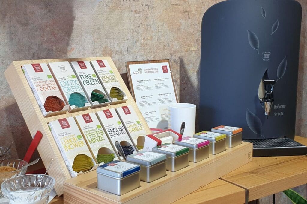 Die Tee-Ecke bietet eine reiche Auswahl an unterschiedlichen Teesorten , die aus Demmers Teehaus stammen.